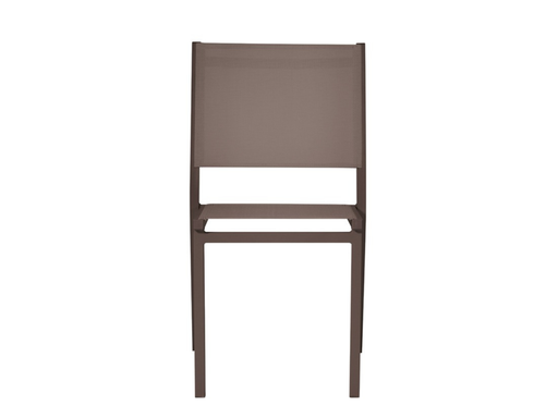 View full detailsElba chair, without armrests, stackable. AVAILABLE COLORS: chocolate aluminum and chocolate textilene - dove gray aluminum and light gray textilen...