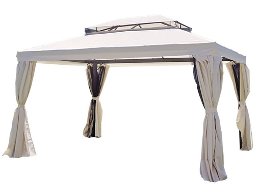 View full detailsNEBRASKA gazebo, 3 x 4 m – 100 x 100 x 130 mm anthracite triangular aluminum poles – 350 g resin-coated polyester – ecru canvas – with windproof ch...