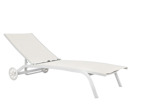 View full details5-position sunbed with wheels – aluminum – 40 x 22 mm tube – stackable – 600 g textilene – gray aluminum frame, black textilene or white aluminum f...