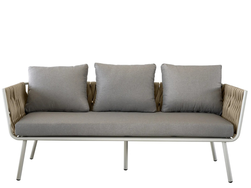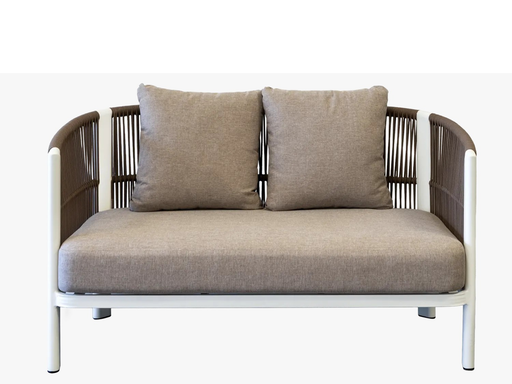 View full detailsPowder-coated aluminum frame, flat and semi-round fiber, 230gr polyester fabric cushions. Art. 6022W-white/6022T-taupe – 2-seater sofa Net Weight:...