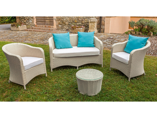 View full detailsPowder-coated aluminum frame, semi-round fiber and 230g polyester fabric cushions. Art. 6112T/6112G – Coffee table Net Weight: 3.80 kg Gross Weigh...