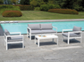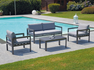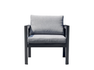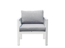 MARSIGLIA armchair, anthracite grey aluminium frame, removable cushions in ash grey polyester or white aluminium frame, removable cushions in ash grey polyester.
