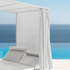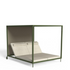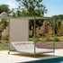 The Daybed from the CleoSoft Alu collection instinctively evokes the feeling of relaxation. The light and geometric aluminum structure contrasts with the more substantial and material sunshade curtains. The large and welcoming double seat is made particularly comfortable by the possibility of reclining the two halves of the lounger differently, for a convivial but personal outdoor experience. The elegance of the textile coverings does not renounce the functionality required of an outdoor element, thanks to the use of weather-resistant fibers and the removable quick dry foam padding.