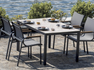TARQUINIA dining set with 4 chairs – 150x90cm table / 5mm printed glass top, chairs with polywood inserts – 30*20/28*18mm tube – anthracite color