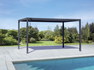 NEW MEXICO pergola 3 x 4 m – 90 x 90 x 1.3 mm anthracite aluminum posts – 120 x 30 x 1.3 mm steel roof crosspieces – 147 x 30 x 1.2 mm steel slats – adjustable slatted roof with crank – max. height 2.30 m – water drainage system integrated inside the supporting posts