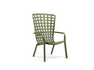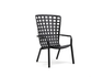 Reclining armchair. Material: fiberglass polypropylene treated anti-UV and mass-colored. Matte finish. Equipped with anti-slip feet. Cushion available on request. Recyclable resin.
