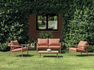 CARTAGENA set, consisting of 2 armchairs, 1 2-seater sofa and a coffee table with 97 x 60 x 30 cm aluminium slatted top, wood-effect aluminium frame, red cushions with removable covers.