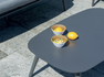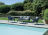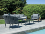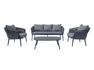 MARBELLA set, consisting of two armchairs, a 3-seater sofa and a coffee table with 100 x 60 x 34 cm aluminum top, anthracite aluminum frame covered in dark gray padded outdoor rope, dark gray removable cushions.