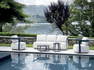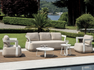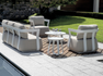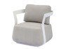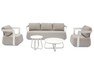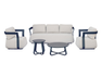 MONACO set, consisting of two armchairs, a 3-seater sofa and two coffee tables with aluminum top Ø80 x 34 cm | Ø 49 x 34 cm, white aluminum frame, light dove gray removable cushions or blue aluminum frame, white removable cushions.