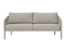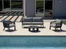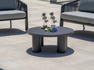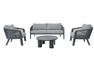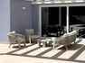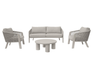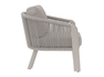 SANTA CRUZ set, consisting of two armchairs, a 2-seater sofa and a coffee table with Ø80 cm aluminum top – anthracite aluminum frame and dark gray outdoor rope with light gray removable cushions or clay aluminum frame and sand outdoor rope with ecru removable cushions.