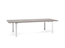 Extendable table. Material: DurelTOP top in anti-UV treated polypropylene, mass-colored. Powder-coated aluminum legs. Matte finish. Equipped with adjustable feet. Recyclable resin.