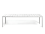 Extendable table. Material: structure and top in painted aluminum. Equipped with adjustable feet.
