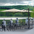Structure rétractable qui permet d'ouvrir et de fermer au-dessus des tables et des chaises sans avoir à déplacer le mobilier.