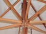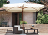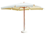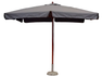 Parasol 3 x 3 m – Série Deluxe – Mât en bois Ø 48/8, monobloc – 2 poulies doubles – Baleines 20 x 24 mm – Hauteur max. avec base 2,78 m – Polyester 230 g, gris ou écru, avec roue de guidage et pare-vent