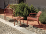 Ensemble de balcon VALENCIA avec fauteuil en polypropylène renforcé de fibres de verre, résistant aux UV et empilable.